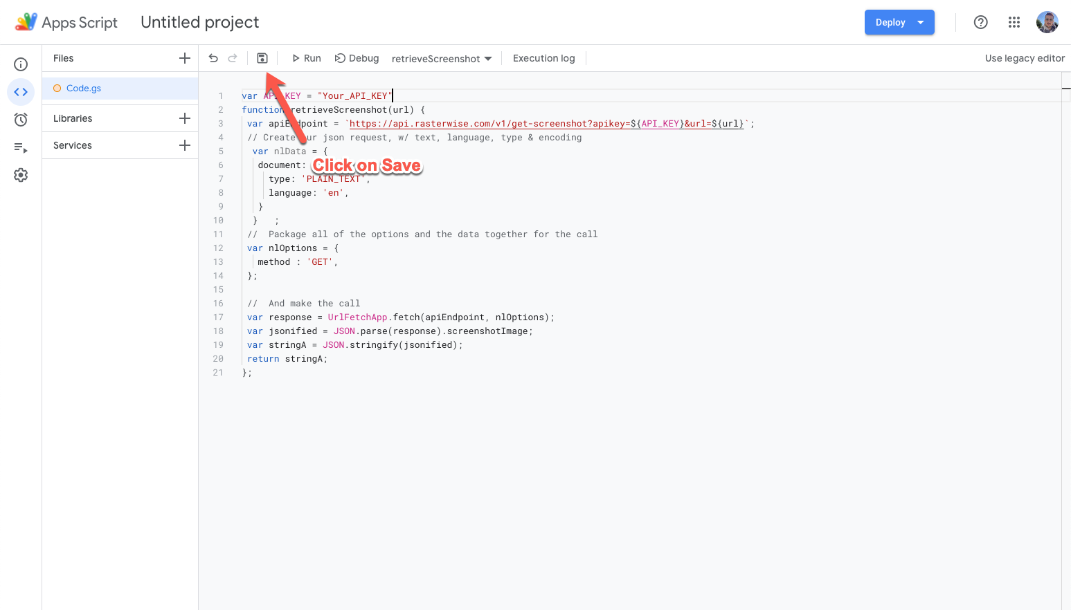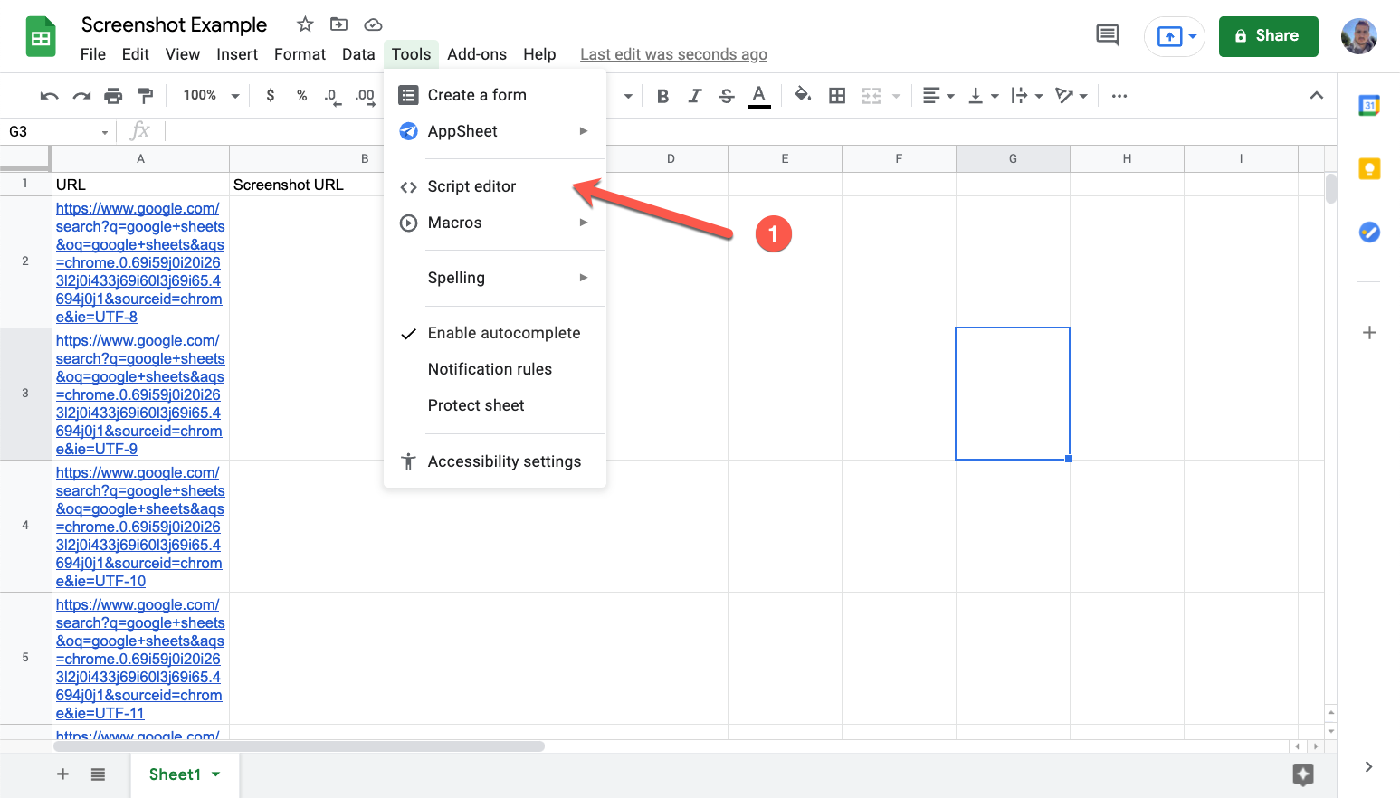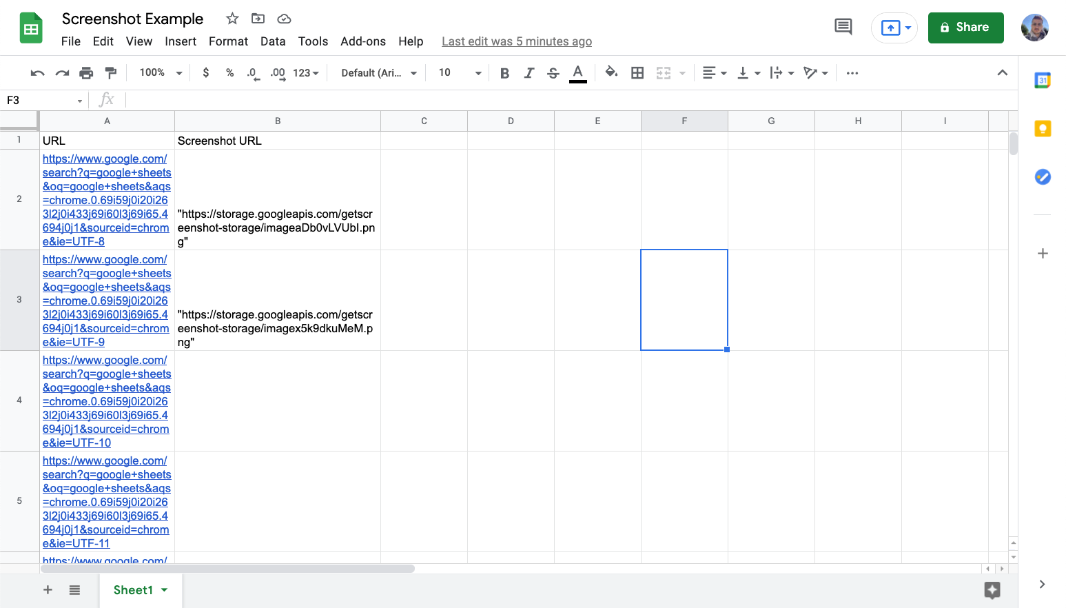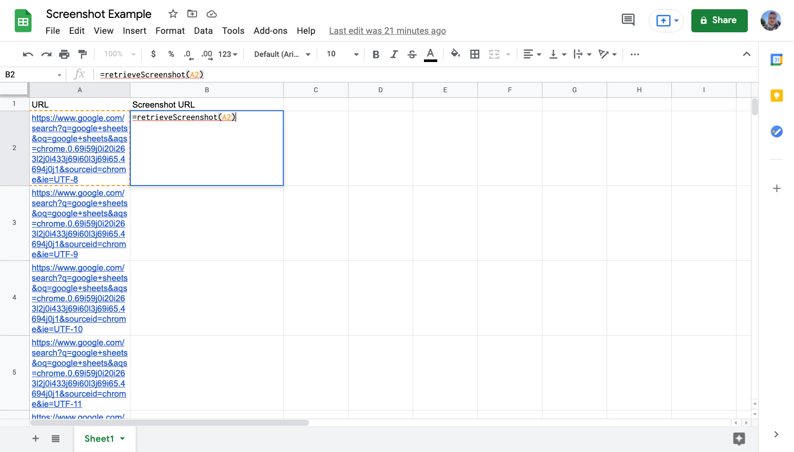 If you don’t do this the next time you open the Google Sheet, it will attempt to retrieve screenshots again for all the URLs you previously took a screenshot of. Unless that’s what you want in your functionality this will turn out in new API calls counted against your quota.